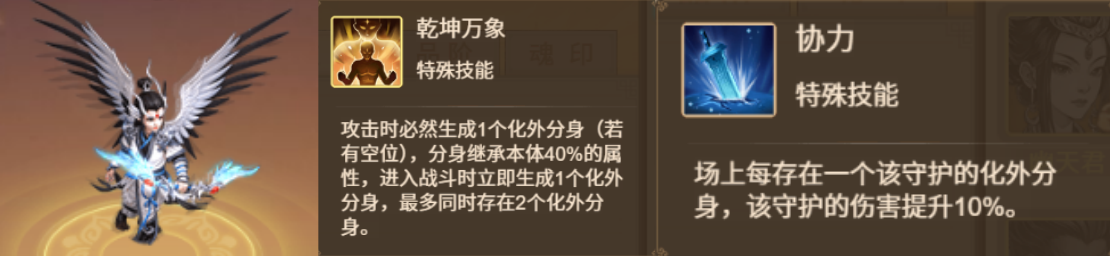 成天君是物理系伙伴,独特的分身机制使他成为了针对黑熊精、夜叉王等妖怪的最佳选择。而在分身增伤的被动加持下,成天君本身的输出能力也相当稳定,是必不可少的功能型伙伴。