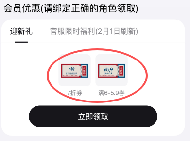 只领取官服限时福利的9折券,因为这个券只能留一个月,并且2月1日零点就刷新了,你留着也没用!